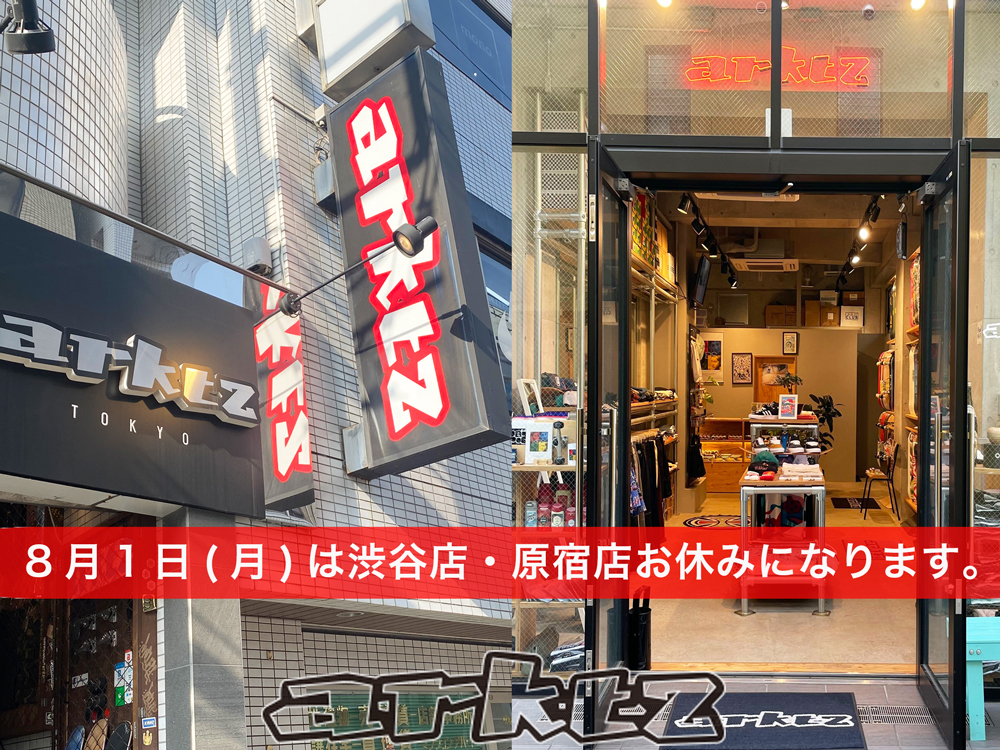 8月1日(月)はarktz渋谷店・原宿店お休みとなります。