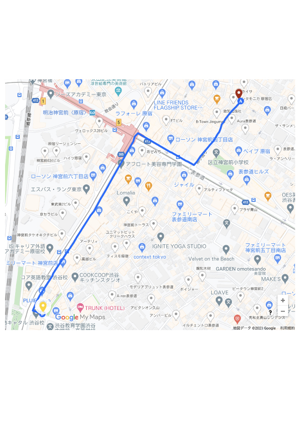 渋谷店から原宿店までは徒歩約10分で行けます。