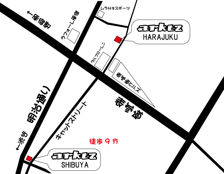 arktz 渋谷店から原宿店の行き方