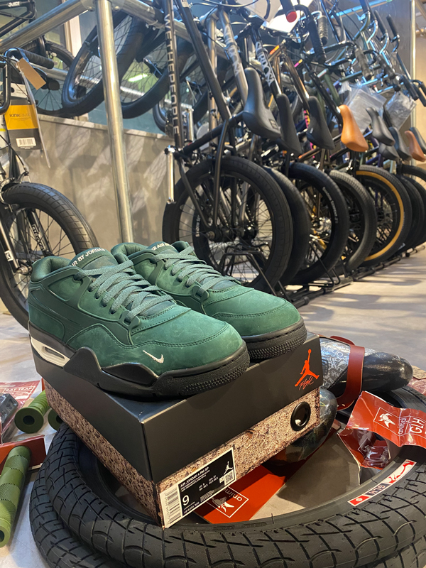 つま先にはミニスウッシュの刺繍、ヒールには”BIKE AIR”、シュータンにも”BIKE AIR BY JORDAN”のテキストが入った仕様となっています。