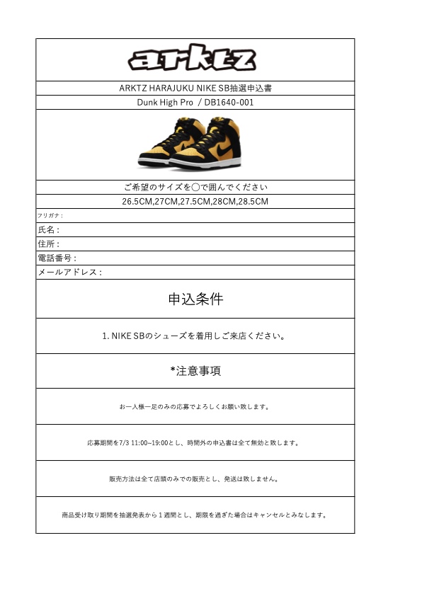 ARKTZ BLOGに記載されている、抽選応募申込書をお客様自身でプリントアウトして頂き、申込書の記入をして頂きます。