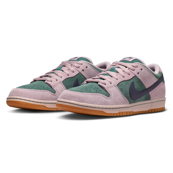 ブルーグリーンのスエードアッパーに、パーティクルローズのオーバーレイを重ねた穏やかな配色のダンクローです。